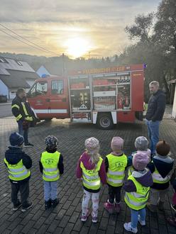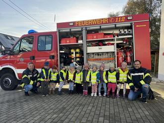 Es war sehr interessant, was sich außer den verschiedenen Löschschläuchen und Pylonen zur Absicherung von Unfällen noch alles im Fahrzeug befindet. Als wir dann im Feuerwehrauto Probesitzen durften, haben wir uns fast wie echte Feuerwehrmänner und Feuerwehrfrauen gefühlt.