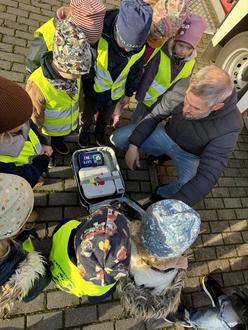 Die beiden Männer haben uns alle wichtigen technischen Geräte, Werkzeuge und sogar den Defibrillator gezeigt und erklärt.