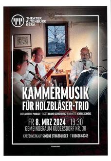 | 19:30 Uhr | Rüdersdorf - Wohnzimmerkonzert mit Musikern des Theaters Gera-Altenburg im Ev. Gemeindezentrum / Eintritt: 5,- EUR |