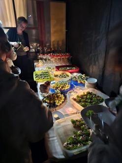 Aber es war nicht nur die Musik, die uns für immer an diesen schönen Abend denken lässt. Den Organisatoren war es gelungen, durch viel Empathie aus nüchternen Räumen ein warmes, passend beleuchtetes, gemütliches Wohnzimmer zu zaubern, so dass eine faszinierende Atmosphäre entstand, die kaum zu beschreiben ist. Fragt am besten die 30 bzw. insgesamt 60 Musikbegeisterten, die eine Karte erstanden haben. Zu Beginn erhielt jeder ein Glas Sekt und in der Pause wurde ein Buffet gereicht, was keine Wünsche offenließ.