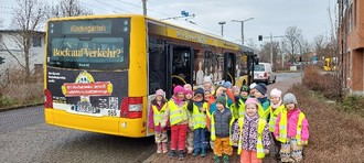 Zu Beginn lernten wir erst einmal, wie man sich im Bus verhält, wo die sichersten Plätze sind und was die Schilder im und außen am Bus für eine Bedeutung haben. Warum die sichersten Plätze so sicher sind, haben wir selbst bei einer Gefahrenbremsung erleben dürfen. Sehr gut war zu erfahren, wie wir uns an einer Bushaltestelle verhalten sollen und wo man stehen muss, damit einem nichts passiert.