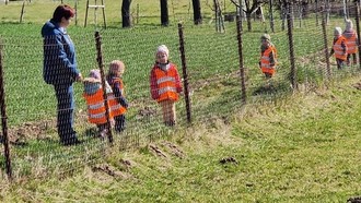 Und natürlich, wie es duften kann, wenn man an den Frühjahrsblühern vorbeiläuft. So langsam sehen wir im Garten die ersten Schmetterlinge herumfliegen und auch die Ameisen sind schon da. Die Vögel zwitschern immer mehr und singen uns schöne Lieder. Die Kleinsten sind sehr neugierig und bestaunen alles, was sie im Garten oder bei Spaziergängen neu entdecken.