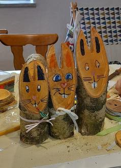 Aus einem kleinen Birkenstamm entstand ein Kaninchen, welches liebevoll bemalt und verzieht wurde.