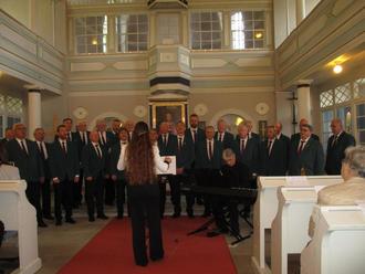 Gleich zu Beginn erklangen Wald- und Jagdlieder von Carl Maria von Weber, darunter auch das bekannte „Lützows wilde Jagd“. Der vierstimmige Chorgesang auf gewohnt hervorragendem Niveau ließ den berühmten Funken von der Bühne sofort auf das Publikum überspringen und das blieb durchgängig so. Es folgten „Wach auf, meins Herzens Schöne“ von Johannes Brahms sowie bekannte und weniger bekannte christliche Lieder. Besonders eindrucksvoll waren „Heilig, heilig“ von Franz Schubert und „Sancta Maria“ von J. Schweitzer, das dem bekannteren „Ave Maria“ ähnlich ist. Dabei herrschte andächtige Stille im Kirchenraum, es waren Gänsehautmomente, die man dabei erleben konnte. Der Chor beherrscht meisterhaft alle Facetten des Gesangs, von getragen bis kraftvoll, von traurig bis fröhlich, es ist ein Erlebnis, ihm zuzuhören. Das hohe musikalische Können zeichnet den Männerchor von jeher aus und das stellte er auch diesmal eindrucksvoll unter Beweis.