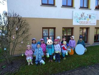 Hatten doch alle Kinder in den vergangenen Wochen fleißig für die Osterzeit gebastelt. So entstanden kleine Holzhasen, Osterkarten, Strumpfhasen und vieles mehr. Wir haben gelernt wie Eier gefärbt werden, das grenzte ein bisschen an Zauberei. Papiereier wurden umwickelt, beklebt und bemalt. So ganz nebenbei konnten wir das richtige benennen von Farben und Formen üben. Aber auch Hasengeschichten haben wir gehört. Zum Beispiel die vom kranken Häschen. Als es wieder gesund war, färbte es in der Osterhasenwerkstatt Eier. Das war lustig anzusehen. Ostergedichte, Lieder in Begleitung von Musikinstrumenten und Fingerspielen begleiteten uns den ganzen Tag. Auch Bewegungsspiele im Zimmer und Garten haben viel Spaß gemacht. Das Osterfest konnte kommen. In der nächsten Zeit werden die kleinen Im Zwergenparadies die Veränderungen der Natur beobachten und uns deshalb viel draußen aufhalten. Da ein Bauernhof gleich neben dem Kinderarten ist, können wir kleine Tierkinder von Haustieren beim Wachsen beobachten. Das wird bestimmt interessant und sehr lehrreich.
