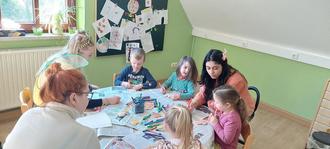 In der Großen Gruppe, unserer Rasselbande, haben die Sozialassistenten der SBBS Gesundheit, Soziales und Sozialpädagogik aus Gera, ein Frühlingsfest für die Kinder gestaltet. Dabei wurde gesungen, gebastelt und getanzt. In kleinen Gruppen wurden Pustebilder, Osterlaternen und Salzteig-Osterfiguren schön bunt gestaltet. Sogar ein Regenbogenexperiment konnten die Kinder durchführen.