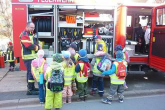 Anlässlich unseres Projektes „Berufe“ waren die Kinder sehr an dem Beruf „Feuerwehrmann“ interessiert. Da wir sehr engagierte Papas haben, die auch in der FFW Rüdersdorf sind, konnten wir den Vormittag dort verbringen. Ein riesengroßes Dankeschön für diese tolle Zeit. Wir hatten gesehen was alles in den Feuerwehrautos vorhanden ist, wie viele Personen in so ein Auto passen und wir durften selbst am Haus das Feuer löschen.