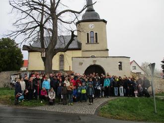 Er begann traditionell um 17.00 Uhr mit dem Eröffnungs-Gottesdienst in der Kirche zu Mühlsdorf. Pfarrer Christian Kurzke leitete ihn, unterstützt vom Kinderchor unter der Leitung von Claudia Rammelt sowie Anne Schumann an der Orgel, Johanna Kurzke mit ihrer Trompete, Verena und Ida Hemmann mit Violine und Flöte. Pfarrer Kurzke sprach in seiner Predigt zunächst vom Karfreitag als einem Tag zwischen Hoffnung und Hoffnungslosigkeit und legte Worte des Apostels Paulus aus dem Römerbrief zugrunde. Auch das Leben des Paulus war darin vom Tod bedroht. Trotzdem blieb er voller Hoffnung, weil es trotz Hoffnungslosigkeit immer noch Hoffnung bei Gott gibt, die immer lebendig wird. Damit meinte er die Auferstehung Jesu Christi zu Ostern. Pfarrer Kurzke unterstrich dies mit der Geschichte des Baums aus dem Garten Gethsemane, aus dem das Kreuz für Jesus Christus gemacht wurde, an dem er starb. Trotzdem blüht neues Leben auf wie neue Zweige an einem Baum und es heißt dann „Siehe, ich mache auch für dich alles neu“, so der Geistliche. Die Kinder des Kinderchores stellten die Geschichte des Baums bildlich dar und unterstrichen sie sehr eindrücklich mit ihren kraftvoll vorgetragenen Liedern.