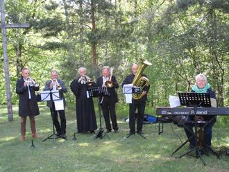 Auch am 18. Mai 2023 hatten wir dank des herrlichen Wetters wieder dieses Glück und die Würdigung des besonderen Feiertages konnte wie schon seit rund 20 Jahren auf der großen Wiese im Naherholungsgebiet Tesseteiche stattfinden. Sehr viele Besucher aus den Kirchengemeinden Rüdersdorf-Kraftsdorf und St. Gangloff hatten sich dazu aufgemacht und feierten gemeinsam einen stimmungsvollen Gottesdienst, den die Pfarrer Christian Kurzke und Stefan Langner leiteten. Die musikalische Ausgestaltung lag wie schon viele Jahre zuvor in den Händen der Bläsergruppe aus Bad Köstritz und von Simone Straßburger am Keybord.