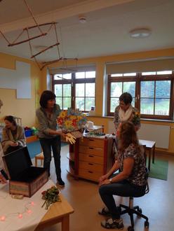 Ein weiterer besonderer Anlass wartete im April auf uns. Wir verabschiedeten unsere liebe Geli nach fast 15 Jahren fleißigen Tätigseins in unserer Einrichtung in ihren wohlverdienten Ruhestand. In geheimer Mission bereiteten wir ein tolles Programm vor. Groß und Klein zeigten, wie wichtig sie für uns alle ist und wie gerne wir sie haben. Auch unsere Eltern nahmen rege an den Vorbereitungen teil. Stellvertretend für alle Eltern, bedankte sich der Elternbeirat bei unserer Geli für ihr Engagement in der Kita.