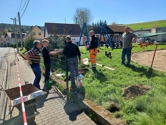 Nach einer kurzen Besprechung gingen wir ans Werk! Hauptaugenmerk lag auf dem Setzen des Zaunes am Spielplatz.