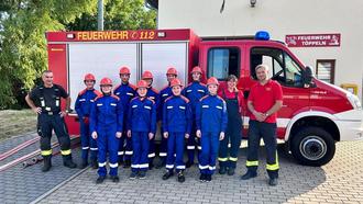 Die zweite Gruppe besteht aus Kindern und Jugendlichen ab der 5. Klasse bis zum 16. Lebensjahr bzw. dem Zeitpunkt ab dem sie in der Einsatzabteilung mitwirken dürfen. Diese Gruppe trifft sich jeden ersten Freitag im Monat ab 18:00 Uhr für ca. 1 Stunde am Gerätehaus in Töppeln. Wir vermitteln in beiden Gruppen Kenntnisse im Brandschutz, Erste Hilfe, Geräte- und Fahrzeugkunde und vieles mehr.