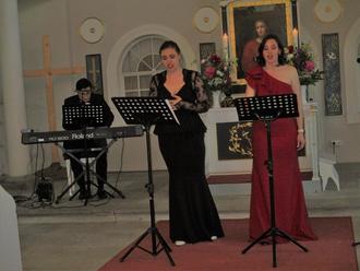 Mit dem gesamten Programm, von den klassischen Werken bis zur leichten Muse, vom ersten bis zum letzten Lied samt der launigen Zugabe „Mein kleiner grüner Kaktus“ von den Comedian Harmonist‘s haben Olga, Veronika und Andrey die Herzen ihrer Zuhörer im Sturm erobert. Sie überzeugten mit ihren wunderbaren lyrischen Sopranstimmen und dem Spiel an Piano und Orgel, kurz gesagt, mit großem Können, mit viel Leidenschaft für ihre Musik und einer überaus sympathischen Ausstrahlung. Das Publikum war begeistert und dankte es den Künstlern mit stehenden Ovationen. Als Kirchengemeinde bedanken wir uns von Herzen für diesen großartigen „Großen Liederabend“, der einem Theaterbesuch in nichts nachstand. Wir wünschen dem Trio „ZuDritt“ alles Gute, viel Erfolg und Gottes Segen für ihre berufliche Zukunft auf den kleinen und großen Bühnen dieser Welt.