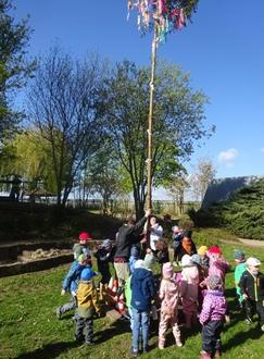 Am 03.05.2023 war es mal wieder soweit. Der Kindermaibaum wurde im Kinderland gesetzt.