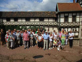 Nach dem Mittagessen stand ein Besuch im Bachhaus in der Altstadt auf dem Programm. Es ist seit seiner Eröffnung 1907 das älteste und bedeutendste Museum zum Leben und Schaffen von Johann Sebastian Bach, der 1685 in Eisenach geboren wurde. 10 Jahre lebte er in der Stadt, bekam ersten Musikunterricht, sang im Schulchor und in der Georgenkirche. Nach dem frühen Tod der Eltern nahm ihn ein Onkel in Ohrdruf auf, dort war er bereits als Organist tätig. Dann zog es ihn hinaus in die Musikwelt u.a. nach Arnstadt, Weimar, Köthen und schließlich nach Leipzig, wo er ab 1723 bis zu seinem Tod 1750 als Kantor und Komponist an der Thomaskirche wirkte und sich mit seiner wunderbaren Musik ein bleibendes Denkmal setzte. Bei einer Führung durch das urige und wunderbar restaurierte Fachwerkhaus von 1456 erfuhren wir Vieles über sein Leben, seine Familie und seine Musik. Was es mit seiner Erfindung, dem wohl temperierten Klavier auf sich hatte, war ebenso Gegenstand des Rundgangs. Eine weitere Besonderheit waren die zahlreichen Hörstationen mit der Musik Bachs und vieler weiterer Komponisten. Als Höhepunkt des Besuchs durften wir uns an einem kleinen Konzert mit Bachs Musik auf historischen Instrumenten der Barockzeit erfreuen. Der kleine romantische Garten hinter dem Haus lud zu Rast und Entspannung an diesem heißen Sommertag ein. Eine Stärkung mit Kaffee und Kuchen gehörte samt Spaziergang durch die Gassen der Altstadt auch dazu.