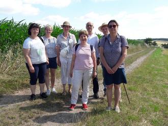 Mit einer stimmungsvollen Andacht begann die kleine Pilgerwanderung. Pfarrer Kurzke stellte ein Wort aus dem Psalm 36 in den Mittelpunkt dieses Tages, dort heißt es: „Bei dir ist die Quelle des Lebens und in deinem Lichte sehen wir das Licht“. Im Geiste sah er dazu eine Quelle, aus der alles Leben kommt. Das spüre man ganz besonders gut in der Sommerzeit in der herrlichen und überquellenden Natur, wenn man sieht, wie schön Gottes Schöpfung gemacht ist. Und nicht nur das, Gott will das Leben auch erhalten, er hat Lust am Überfluss, an allem, was er wachsen und gedeihen lässt, damit wir gut auf seiner Erde leben können. Ohne Arbeit und Mühe geht es nicht, doch Gottes Zugaben sorgen dafür, dass wir mit Freude und Liebe, mit der Musik, in den Gottesdiensten, am arbeitsfreien Sonntag, im Urlaub oder bei erfüllenden Hobbys und Ehrenämtern immer wieder Kraft und Mut für unseren Alltag schöpfen können. Jeder von uns sollte sich fragen: Was sind meine Kraft-Quellen für mein Leben?