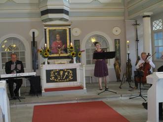 Schöne Überraschungen sind stets willkommen und auch der Kraftsdorfer Musiksommer wartet ab und an damit auf. So geschehen am 4. August 2024, einem sonnigen Sommersonntag, an dem sich zahlreiche Besucher in unserer Kirche St. Peter und Paul einfanden. Sie alle und auch wir als Kirchengemeinde Rüdersdorf-Kraftsdorf waren gespannt auf „Die kleine musikalische Note aus Plauen“. Zum ersten Mal war diese Formation bei uns zu Gast, die bis dahin völlig unbekannt war. Das sollte sich rasch ändern, denn das Trio verstand es hervorragend, sein Publikum von Anfang bis Ende zu begeistern und zu überraschen.