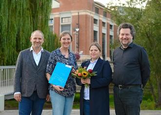 Eisenach gewinnt den Thüringer Umweltpreis v.l.n.r. Umweltminister Bernhard Stengele, Dr. Annette Brunner, Katja Schmidberger und Laudator Prof. Dr.-Ing. Viktor Wesselak.