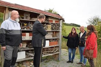 Oberbürgermeister Christoph Ihling traf am 30. September 2024 die Initiatoren des preisgekrönten Projekts „Kleingarten trifft Naturschutz“ in der Anlage des Kleingartenvereins Sonnenschein e.V. in der Stedtfelder Straße in Eisenach. Gemeinsam mit Andrea und Manfred Bornholt, den Hauptakteuren des Projekts, machte er sich vor Ort ein Bild von den vielfältigen Naturschutzmaßnahmen, die in Zusammenarbeit mit der Stadt Eisenach umgesetzt wurden. Das Projekt war am 11. September 2024 mit dem Thüringer Naturschutzpreis ausgezeichnet worden. Der Oberbürgermeister zeigte sich beeindruckt: „Es ist bemerkenswert, was hier mit viel Herzblut und enormer Kreativität auf die Beine gestellt wurde. Ich danke den Initiatoren, insbesondere der Familie Bornholt, für ihren Einsatz und die gestaltungsstarke Umsetzung. Der Thüringer Naturschutzpreis für dieses Projekt ist vollkommen gerechtfertigt und zeigt, wie viel erreicht werden kann, wenn Bürger und Verwaltung gemeinsam handeln.“