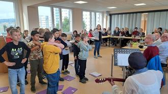 Die Klasse 4c der Mosewaldschule hat zur Begrüßung ein paar Lieder einstudiert.