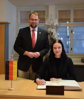 Lena Oppermann trug sich ins Goldene Buch der Stadt Eisenach ein