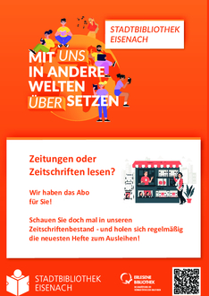 Die Stadtbibliothek Eisenach hält neben vielen anderen Medien auch eine Vielzahl an Zeitschriften zur Ausleihe bereit. Die mehr als 50 Abonnements umfassen Magazine aus den Bereichen Lifestyle, Reisen, Genuss, Wissen, Politik, Garten, Finanzen sowie einige Kinderzeitschriften wie Micky Maus, Geolino oder Lissy. Mit einer Bibliotheksanmeldung haben die Nutzerinnen und Nutzer nicht nur Zugang zur Ausleihe von Büchern, CDs, Filmen, Spielen oder Dingen, sondern auch von Zeitschriftenheften. Zudem können die Hefte der Stiftung Warentest und die aktuellen Tageszeitungen „Thüringer Allgemeine“ oder „Thüringische Landeszeitung“ vor Ort eingesehen werden. Wer die Zeitschriftenabonnements aus der Stadtbibliothek zum Ausleihen nutzt, leistet gleichzeitig - wie bei der Ausleihe aller anderen Medien auch - einen Beitrag zur Nachhaltigkeit, im Interesse der Umwelt und des eigenen Portomonnaies.