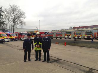 Im Beisein zahlreicher Gäste der Berufsfeuerwehr, der Eisenacher Ortsteilfeuerwehren, anderer Hilfsorganisationen sowie dem historischen Löschzug des feuerwehrtechnischen Zentrums Hattengehau hatte er zum Abschied symbolisch sein „letztes Feuer gelöscht“.