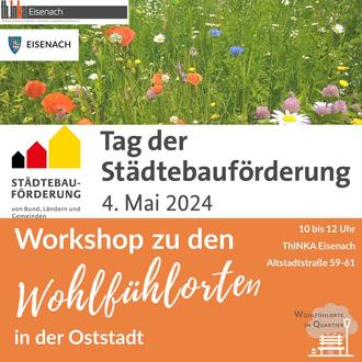 Zum diesjährigen bundesweiten Tag der Städtebauförderung veranstaltet die Stadtverwaltung am Samstag, 4. Mai, einen öffentlichen Bürger-Workshop zur Gestaltung von „Wohlfühlorten“ in der Eisenacher Oststadt.