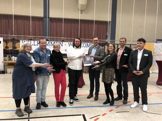 Übergabe der Situations- und Ressourcenanalyse durch Steffen Präger von der Wandelwerft GmbH an Martin Rosenstengel, Kreisbeigeordneter, die beiden lokalen Partnerschaften für Demokratie Eisenach und Wutha-Farnroda/Wartburgkreis sowie die federführenden Ämter im Landratsamt und der Stadtverwaltung Eisenach.