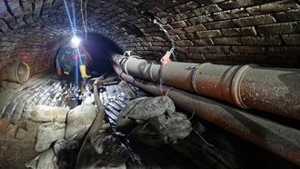 Blick ins Gewölbe: Mit zwei Leitungen wird das Wasser an der Baustelle vorbeigeführt. Über Tage gibt es eine dritte Leitung, die mit einer Pumpe betrieben wird.