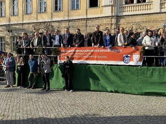 Zahlreiche Ehrengäste bevölkern die Tribüne, darunter Ministerpräsident Mario Voigt und Vertreter aus Partnerstädten.