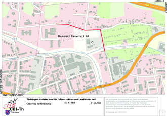 Der erste Bauabschnitt erstreckt sich von Palmental Hausnummer 23 bis zum Anschluss an die Schlachthofstraße. Die Baukosten belaufen sich auf rund 2,5 Millionen Euro brutto. An der Baumaßnahme sind neben der Stadt Eisenach der Trink- und Abwasser Verband Eisenach-Erbstromtal (TAV) und die EVB Netze GmbH beteiligt. Gebaut wird zunächst in einem Abschnitt, der von der Hausnummer Palmental 23 (östlich der Zufahrt zur Berufsschule) bis zum Anschluss Schlachthofstraße (Weg an der Gartenanlage) verläuft. Eine Karte verdeutlicht das Baufeld. Bauende ist laut Plan im Sommer 2024.