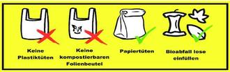 Besonders ist darauf hinzuweisen, dass auch kompostierbare Abfallbeutel einen Störstoff darstellen. "Bio"-Plastiktüten werden in der Praxis faktisch nicht kompostiert, da ihre Verrottung im Kompostwerk zu lange dauert. Im Bioabfall lassen sie sich kaum von herkömmlichen Plastiktüten unterscheiden, sie werden somit aussortiert und verbrannt. Das ist absolut nicht "bio", sondern stellt eine Ressourcenvernichtung und Energieverschwendung dar.