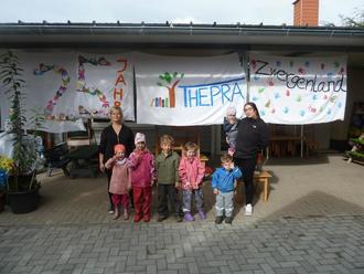 Die derzeit 34 Zwerge bereiten sich auf ihr großes Jubiläum vor. 80 Jahre Kindergarten in Stockhausen und 25 Jahre THEPRA KITA Zwergenland. Das muss richtig gefeiert werden und zwar eine Woche lang. In einer Festwoche vom 14. bis 21. Juni 2024 haben die Erzieherinnen und die Kinder viel vor. Von einem Chroniktag, über einen Seniorennachmittag bis hin zum großen Sommerfest für „Groß und Klein“ ist alles dabei.