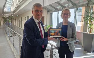 Oberbürgermeisterin Katja Wolf (von rechts) und Landrat Reinhard Krebs stellen den gemeinsamen Veranstaltungskalender für die Wartburgregion vor.
