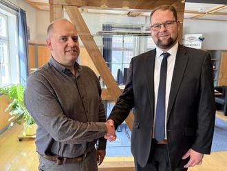 Oberbürgermeister Christoph Ihling begrüßt Michael Frisch als neuen Wirtschaftsförderer.