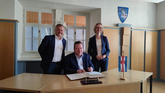 René Witte beim Eintrag ins Goldene Buch mit Shpetim Alaj und Katja Wolf.