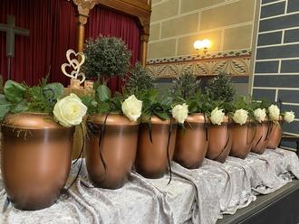 Im Anschluss an die Veranstaltung in der Kapelle legten die Trauergäste Blumen nieder und zündeten Kerzen für die Verstorbenen an, bevor alle gemeinsam den Weg zur letzten Ruhestätte gingen.