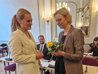 Julia Durner (links) ist neue Vorsitzende des Eisenacher Stadtrates. Oberbürgermeisterin Katja Wolf gratuliert.