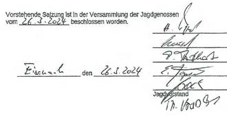 (4) über die Beschlüsse des Jagdvorstandes ist eine Niederschrift zu fertigen und von Vorstand und Schriftführer zu unterzeichnen.