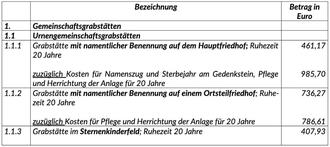 (2) Die in den Gebühren enthaltenen Leistungsbestandteile ergeben sich aus der Anlage zu dieser Satzung.“