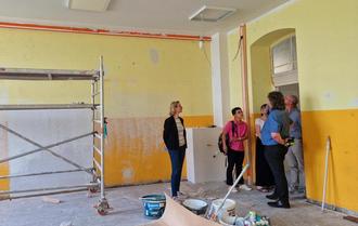 Aktuell wurden bisher für die Sanierung des Bestandsgebäudes rund 1.420.000 Euro verbaut, davon 1.184.500 Euro Fördermittel. In diesem Jahr stehen noch weitere Mittel (HH-Reste) in Höhe von rund 520.000 Euro zur Verfügung, für 2024 sind nochmals 360.000 Euro geplant. Mit diesen Mitteln sollen dann bis Ende 2024 die noch nicht sanierten Räume sowie die Toiletten instandgesetzt werden. „Die lange Bauzeit hat vorrangig organisatorische Ursachen. Es können immer nur maximal vier Räume gleichzeitig leergezogen und saniert werden. Zudem haben aber auch die Ereignisse der vergangenen Jahre, wie Corona-Pandemie und Ukraine-Krise, und die damit verbundenen Personal- und Materialengpässe zu einer Bauzeitverlängerung geführt“ erklärte Katja Wolf.