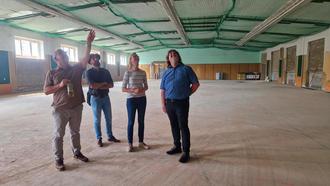Baufortschritt in der Jahnsporthalle, v.l.n.r. Thomas Göbhardt (Fachplaner vom Ingenieurbüro Sauerbier und Wagner), Martin Gensel (Hochbauingenieur Stadt Eisenach), Oberbürgermeisterin Katja Wolf, Hauptamtliche Beigeordnete Ingo Wachtmeister.