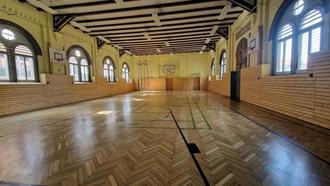 Neu aufgearbeiteter Hallenboden in der Werner-Seelenbinder-Sporthalle.