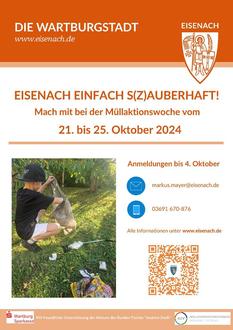 Während der Aktionswoche soll Müll an Straßenrändern, auf Wiesen, im Wald oder an Gewässern aufgesammelt und entsorgt werden, um ein Zeichen gegen die Vermüllung der Stadt zu setzen und Eisenach einfach s(z)auberhaft zu halten. Die Stadt hofft auf eine große Beteiligung.