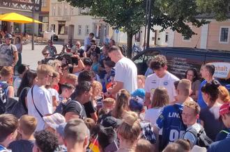 Begrüßt wurden ebenfalls die Teilnehmenden des Wartburg Cups. Zum Abschluss des Bühnenprogramms präsentierte der Basketball-Nachwuchs der Eisenach Tigers sein Können. Danach drängten sich - allen voran die Kinder der Eisenacher Schulen - bei der Autogrammstunde, um Autogrammkarten ihrer Idole zu ergattern. Der Dank der Stadt Eisenach gilt allen Vereinen und weiteren Ehrenamtlichen, die im Hintergrund zum Gelingen des Empfangs beigetragen haben.