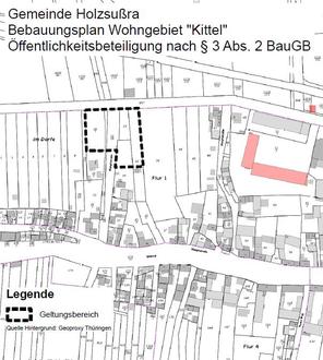 Der Gemeinderat von Holzsußra hat in seiner Sitzung am 05.12.2024 mit Beschluss Nr. 23.2024 die Durchführung des Standardverfahrens für den Bebauungsplans Wohngebiet „Kittel“ entschieden und die öffentliche Auslegung nach § 3 Abs. 1 BauGB beschlossen.