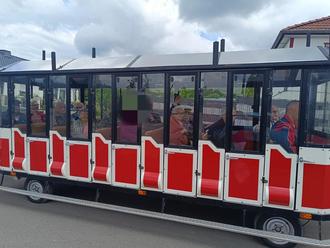 Mit viel Wissenswertem über das Helbetal fuhren wir gemütlich 1 Stunde durch die wunderschöne Natur. Bewohner und Personal der SWG genossen einen tollen Nachmittag. Es wurde in jedem Wagon gesungen und sich unterhalten. Im Anschluss gab es für alle einen Eiskaffee.