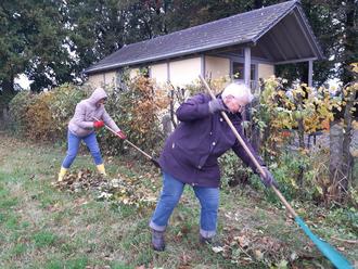 Mit Hecken- und Astscheren, Motorsägen und Harken rückte man dem Wildwuchs zu Leibe. Bis zum Mittag hatte unser fleißiger Arbeitstrupp dann bereits die Hecke geschnitten, Laub zusammengefegt und den Friedhof auf Vordermann gebracht, so dass der anschließende Imbiss mehr als verdient war!