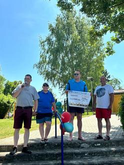 Nicht nur das Programm, sondern auch das soziale Engagement stand im Mittelpunkt: Ein Scheck über 5.000 Euro wurde von Marco Bartsch, im Namen des Ebelebener Sport- und Schwimmbadvereins, feierlich an den Bürgermeister der Stadt Ebeleben überreicht. Das Geld soll der Erhaltung und Weiterentwicklung des Schwimmbades zugutekommen und wurde in den letzten Jahren angespart. Es stammt aus Verkäufen zum Weihnachtsmarkt, zu Schwimmbadfesten, von Kuchenbasaren und aus Spenden.